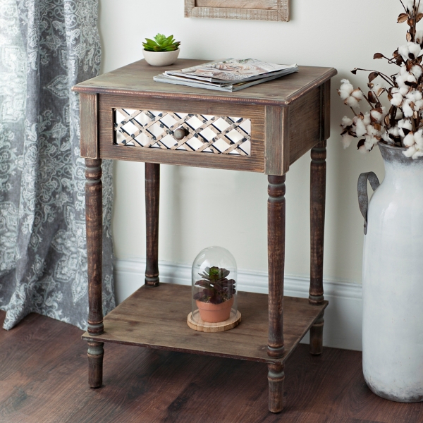 Rustic Mirrored Lattice Accent Table Kirklands Home